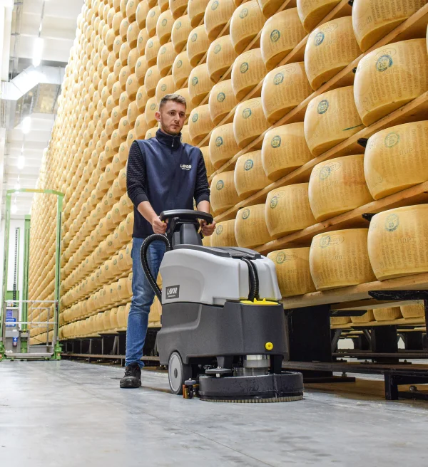 Profesjonalny automat myjący Lavor Dynamic 45B to wydajna szorowarka bateryjna zasilana napięciem 24V, przeznaczona do czyszczenia średnich i dużych powierzchni — do 1600 m²/h.